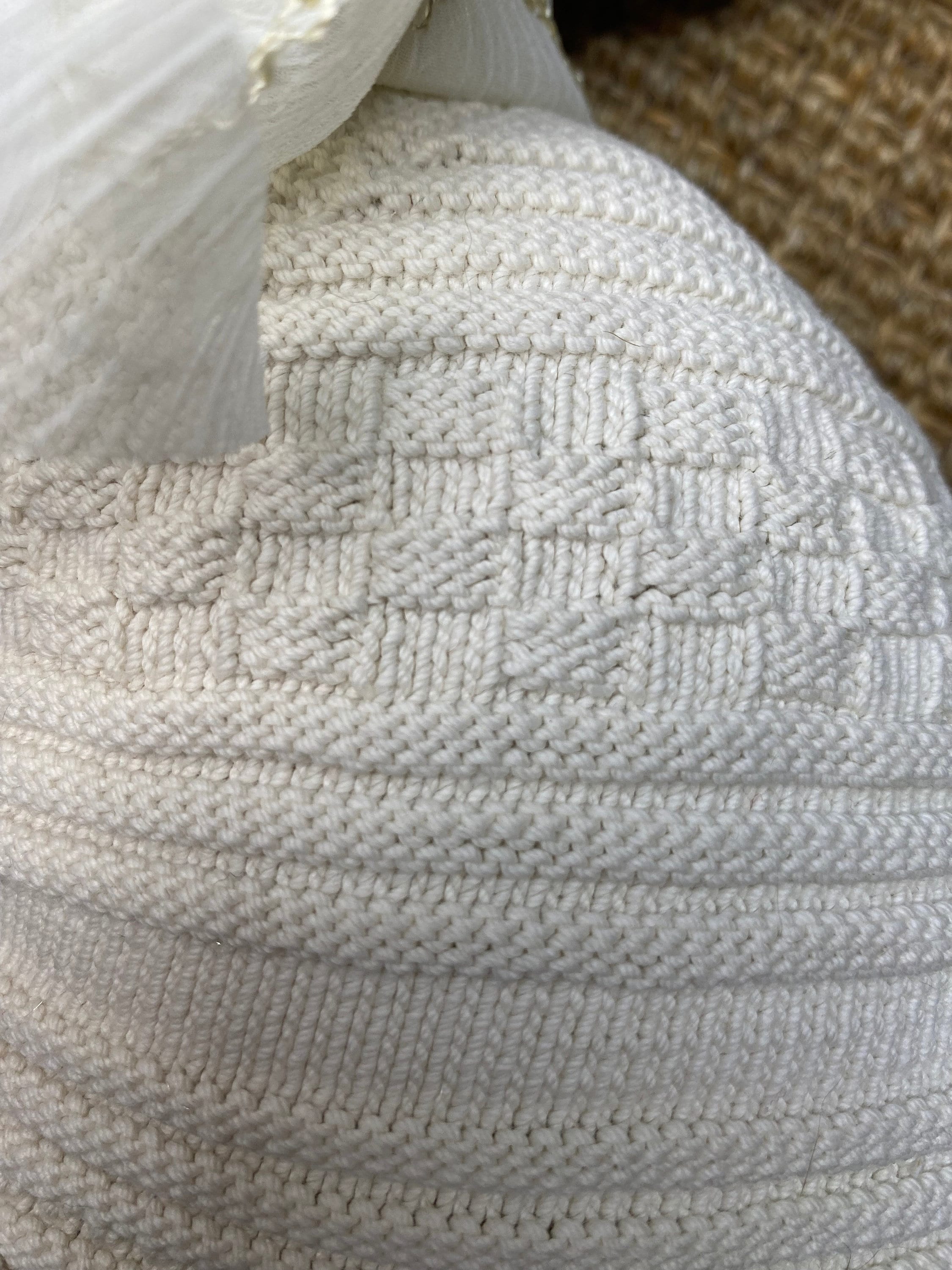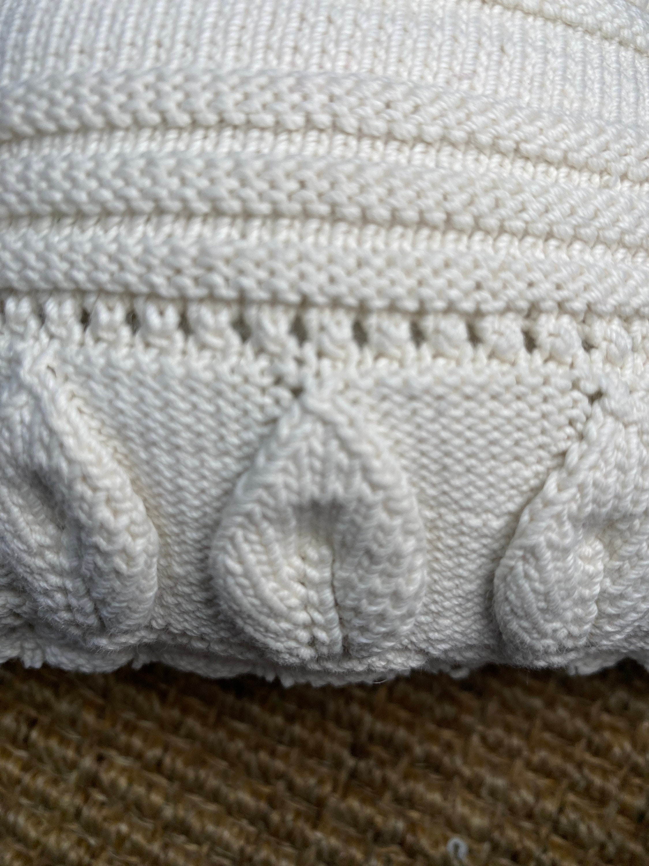Large vintage crochet bunny pillow, farmhouse cottage style Easter Rabbit, embroidered flowers on back! Neutral Spring toss cushion, 13”