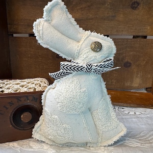 Bunny - Antique Toile Rabbit Bowl Filler, French Country Farmhouse Cottage Spring Decor, Fabric from France! Blue Easter Bunny, 9”