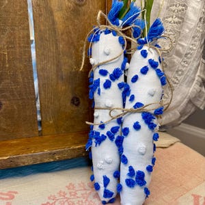 This rabbit will compliment any farmhouse, shabby cottage or Spring/Easter decor. It also would make a thoughtful gift. Approximately 18 inches tall and 9 inches wide. Please note the worn nature of the antique quilt as there is some tea staining, worn areas or tatters which adds to its charm. The price reflects the rarity of antique and textiles which are getting increasingly hard to find - and as I added a large piece of a vintage chenille quilt to the reverse, the textiles to make this one of a kind bunny are more costly.