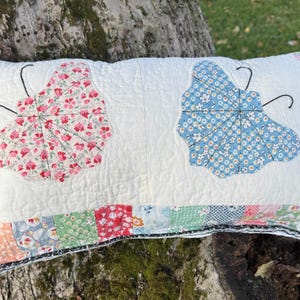 This is the most charming little pillow: I picked up this antique Victorian background fabric in Berlin and the detailing in the pattern is just lovely! I loved the vintage grandmothers garden quilt and salvaged a piece which went so well with this pretty fabric - perfect! This vintage quilt pillow with antique textile is perfect for any farmhouse, shabby chic, cottage style or anywhere you want something unique with a pop of such pretty coloring! Approximately 11" wide and just 10" tall - I could see it in front of a group of pillows like its sister listing at https://shabbyinthecityshop.etsy.com/listing/4341335140, on a bed, easy chair, sofa or anywhere you can imagine!