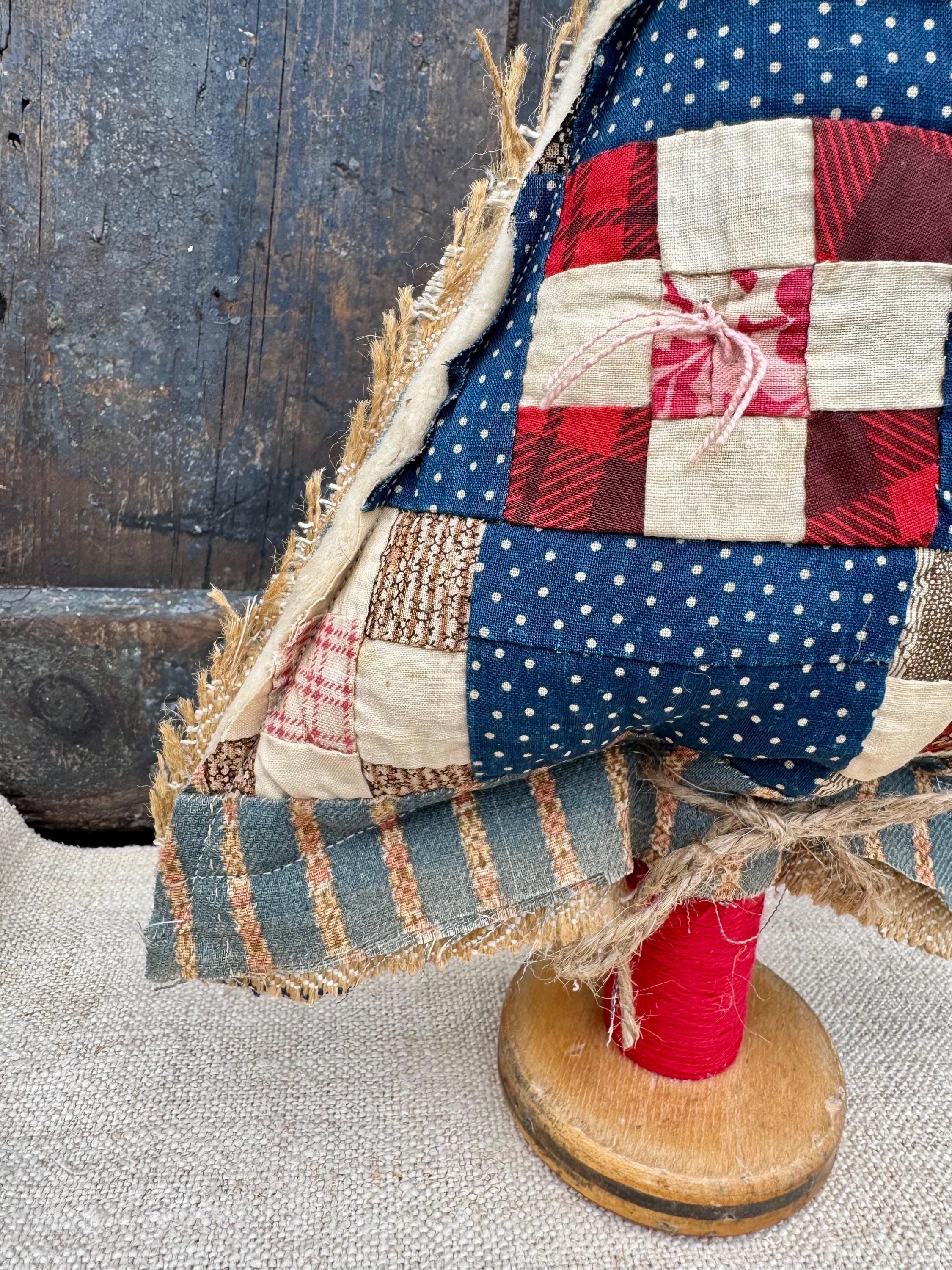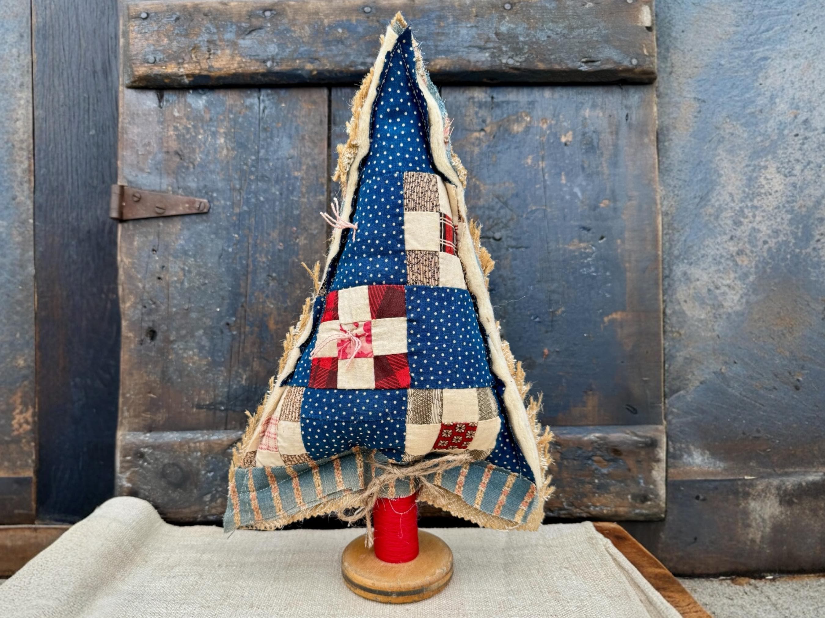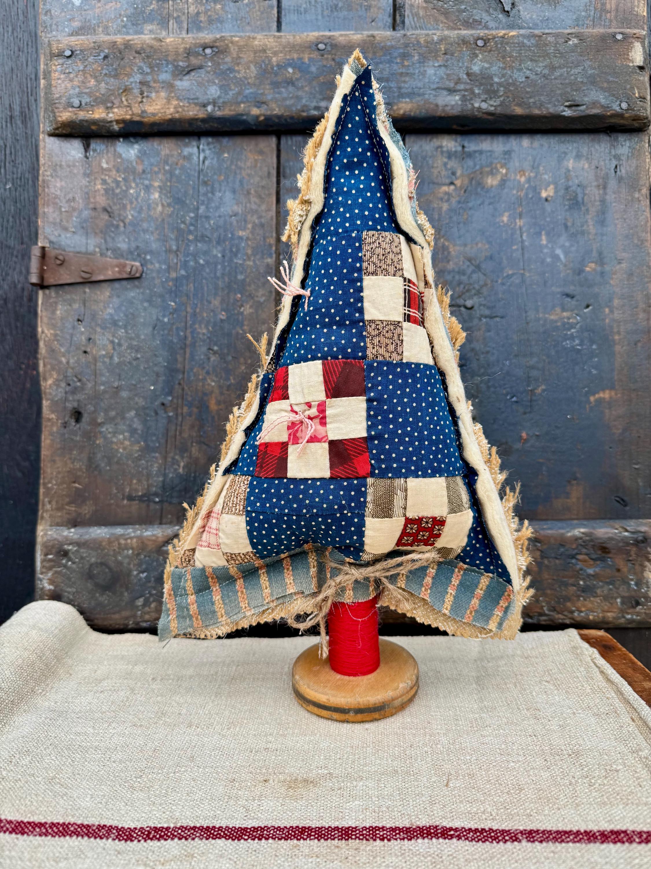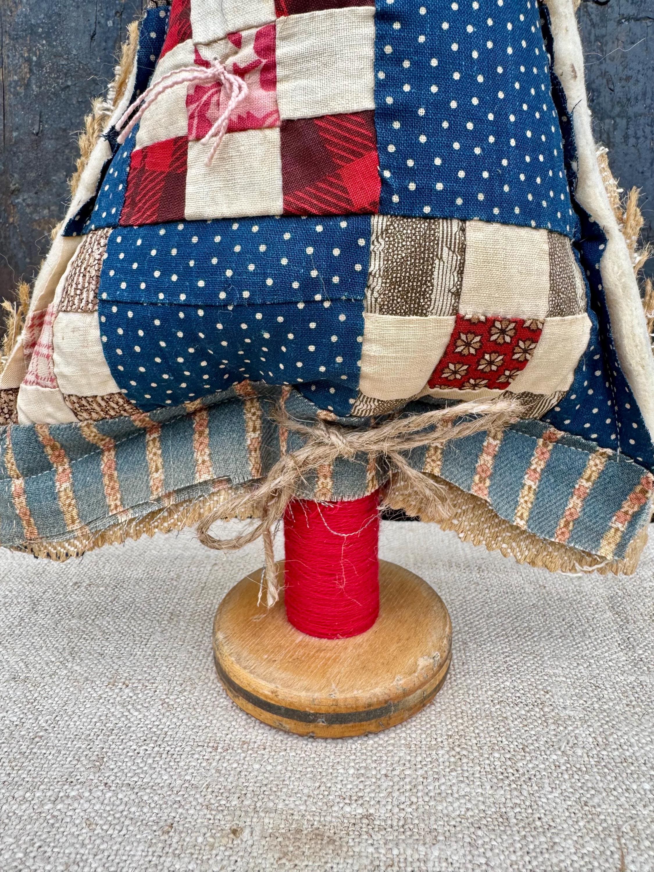 Tree - Antique Quilt Christmas Tree on Vintage Spool, Farmhouse cottage RARE 19th Century Quilt with Grain sack back, handmade Holiday Decor