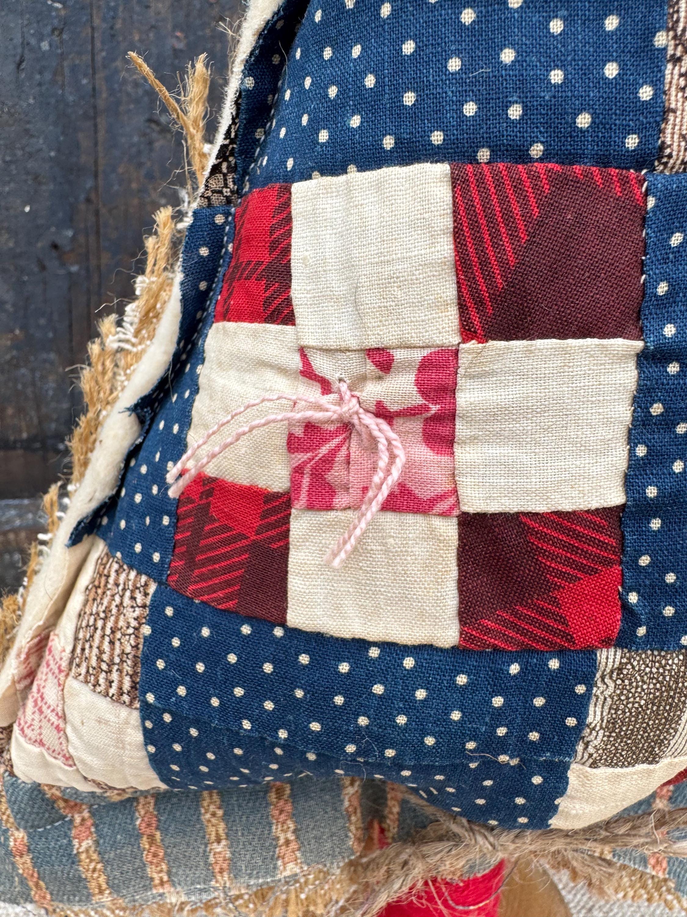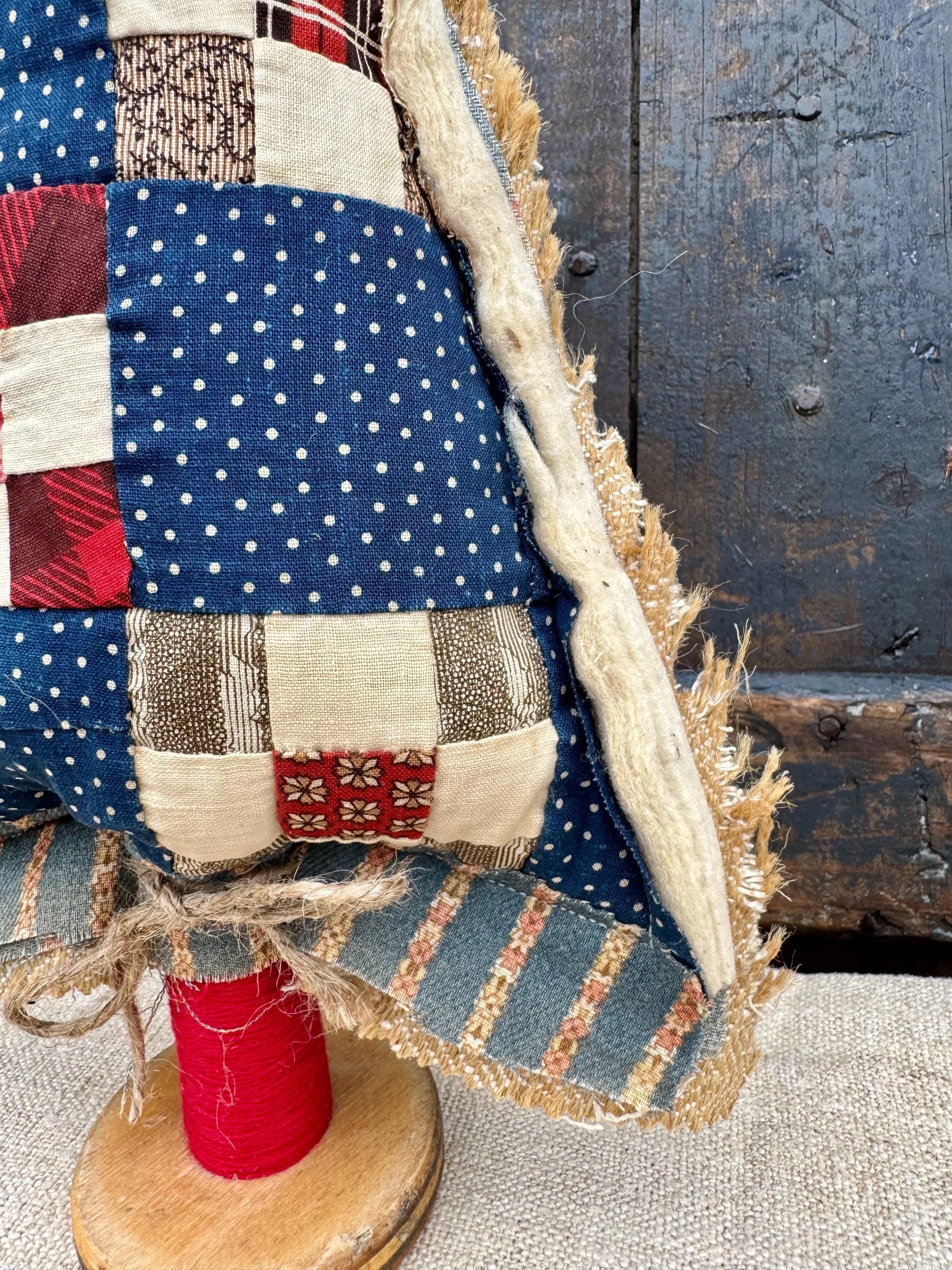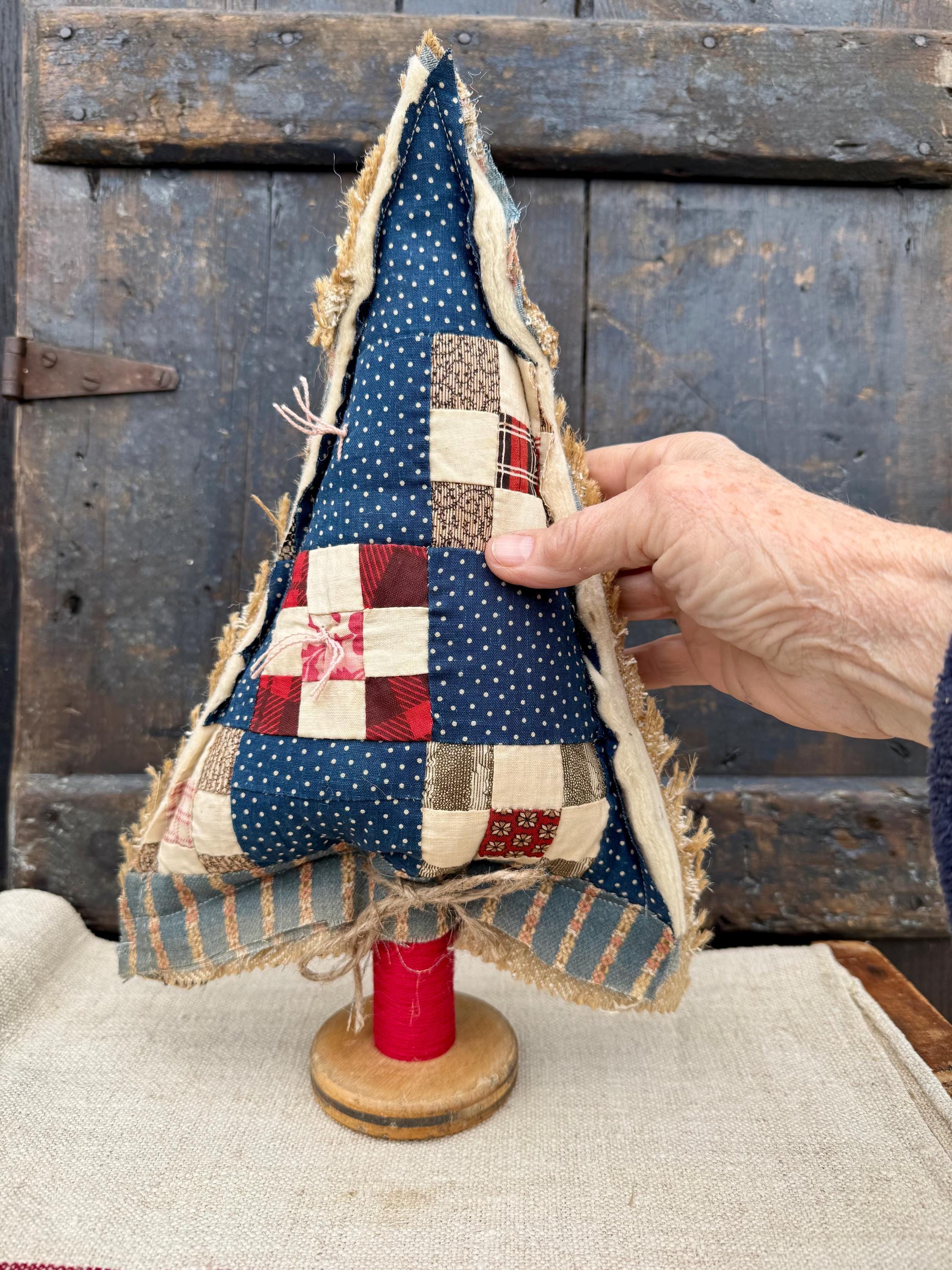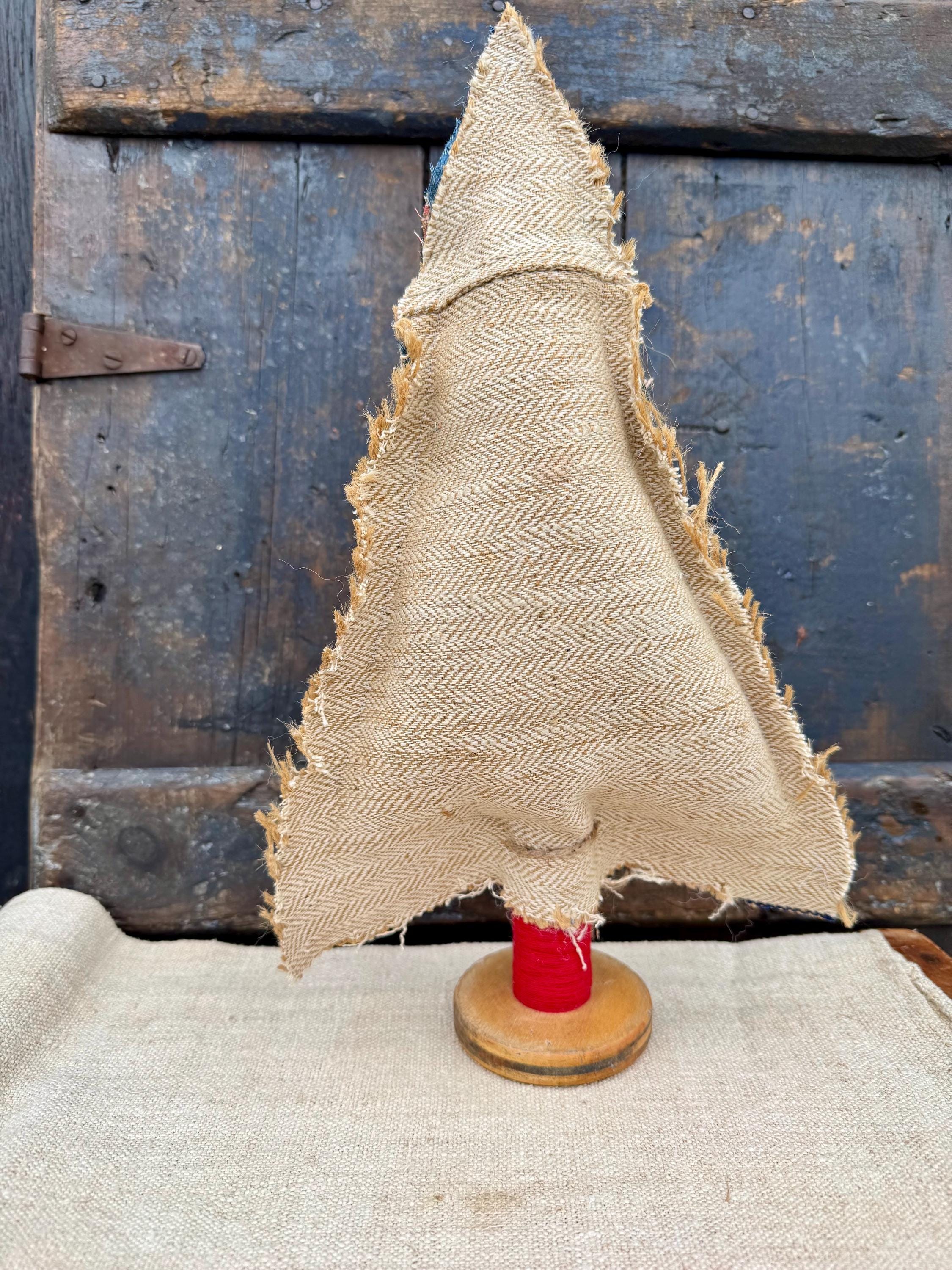 Tree - Antique Quilt Christmas Tree on Vintage Spool, Farmhouse cottage RARE 19th Century Quilt with Grain sack back, handmade Holiday Decor