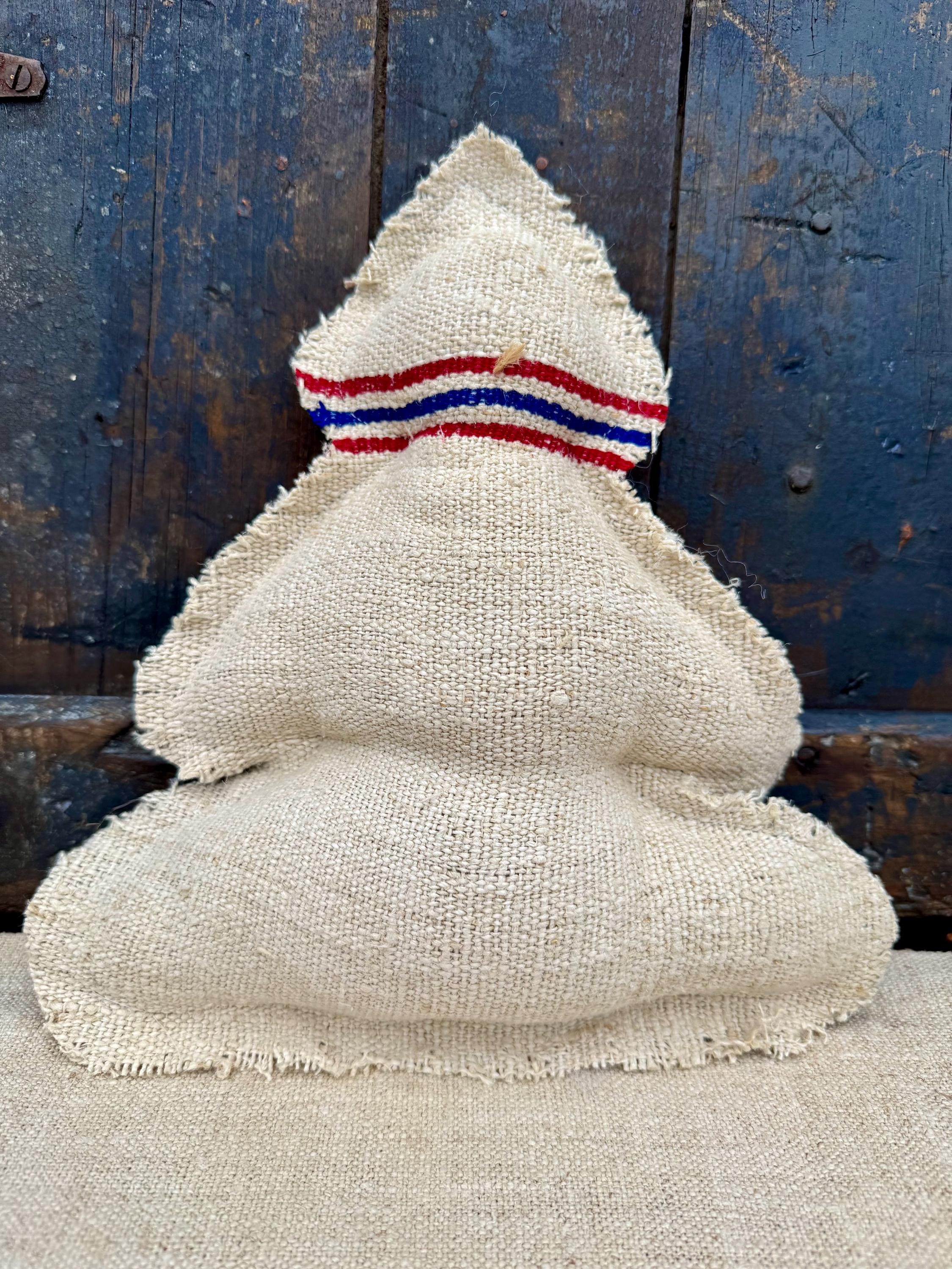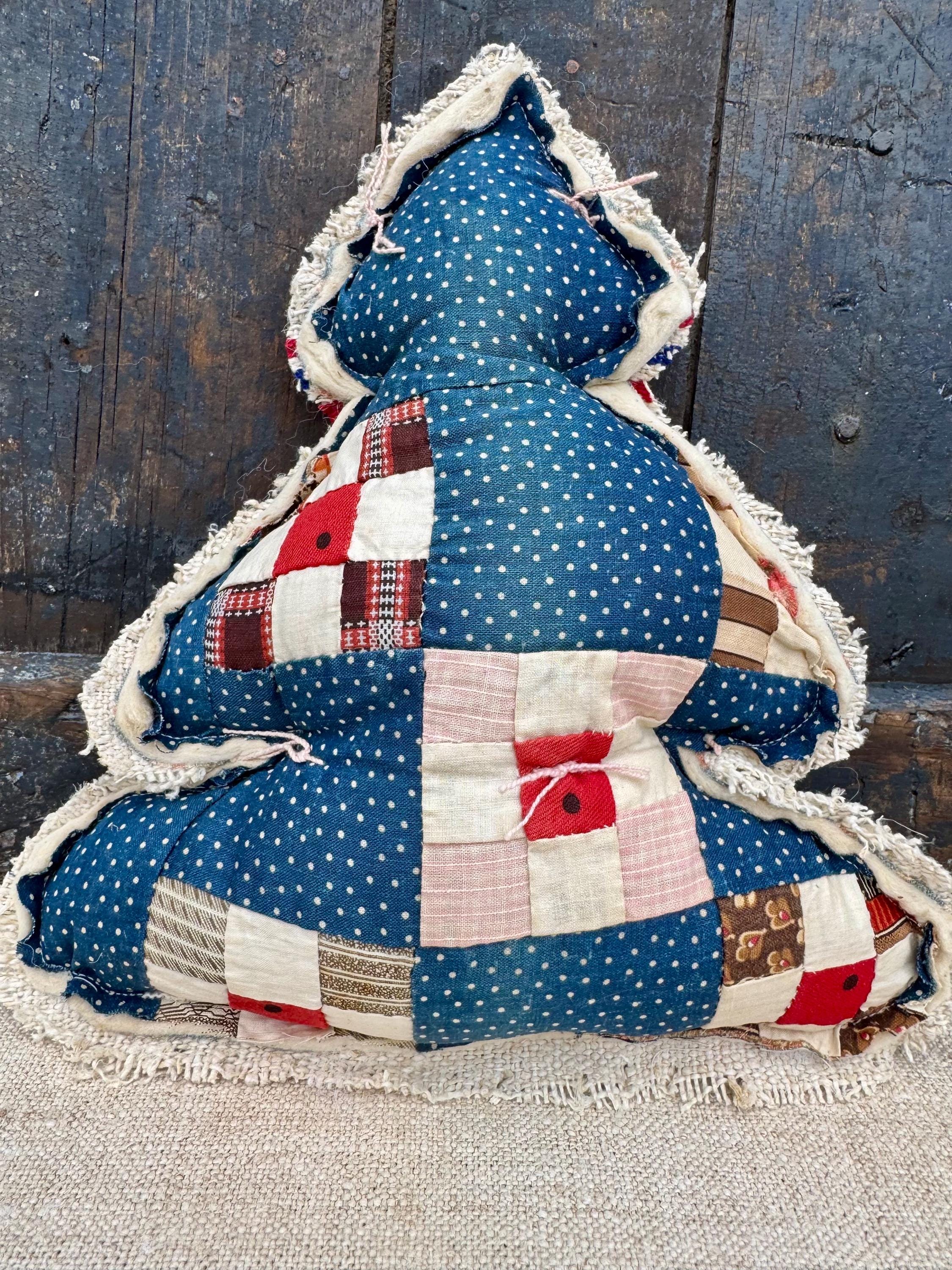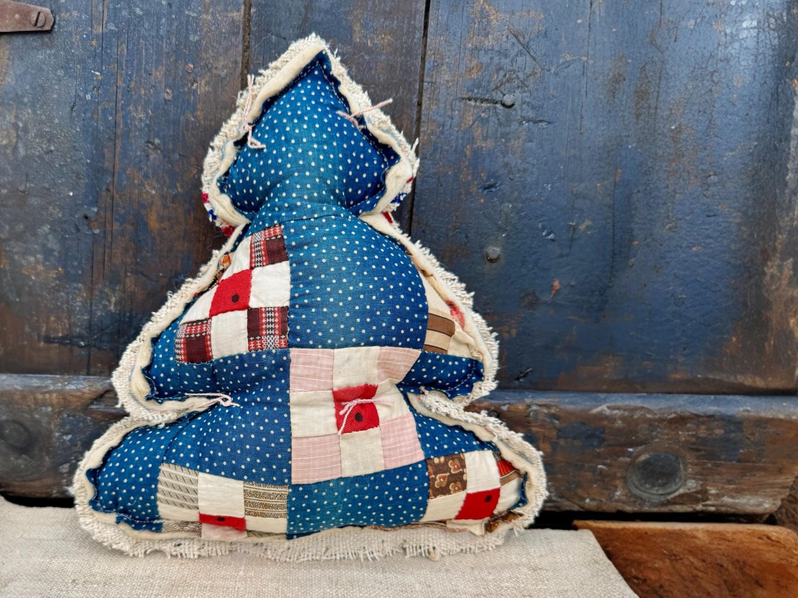 Tree - Antique Quilt Christmas Tree Pillow, Farmhouse cottage RARE 19th Century Quilt with Grain sack back, Handmade Holiday Decor, 12”