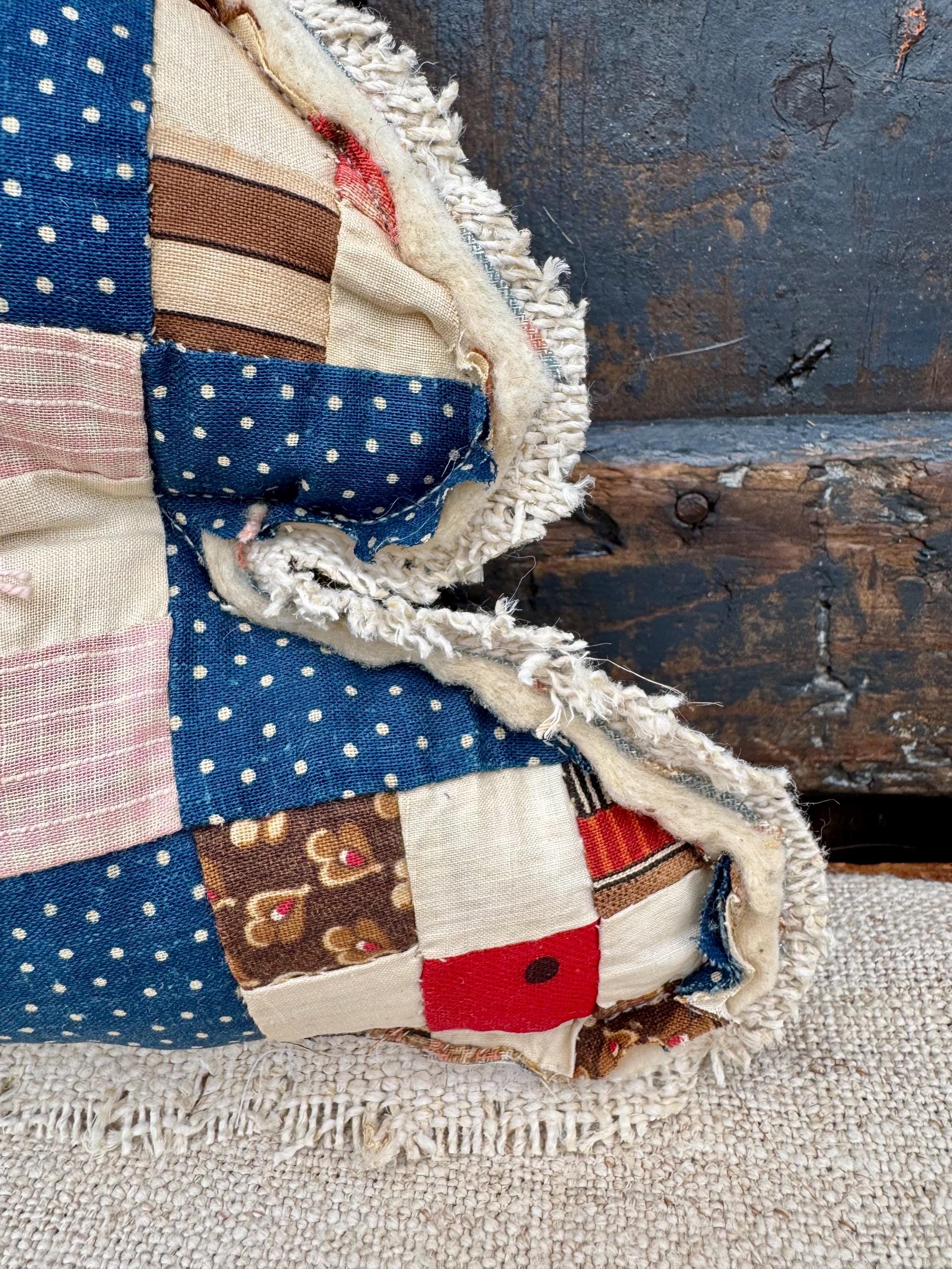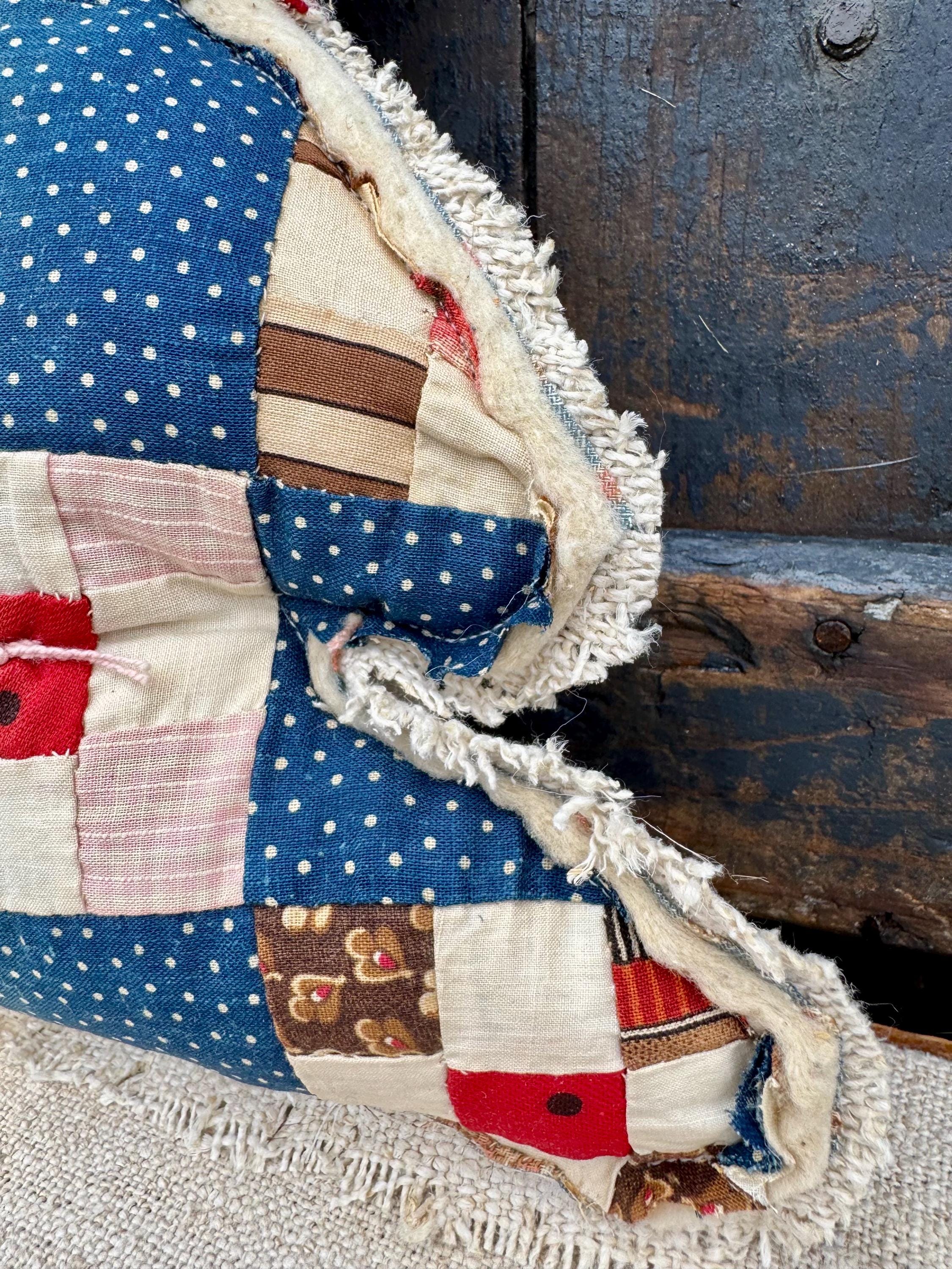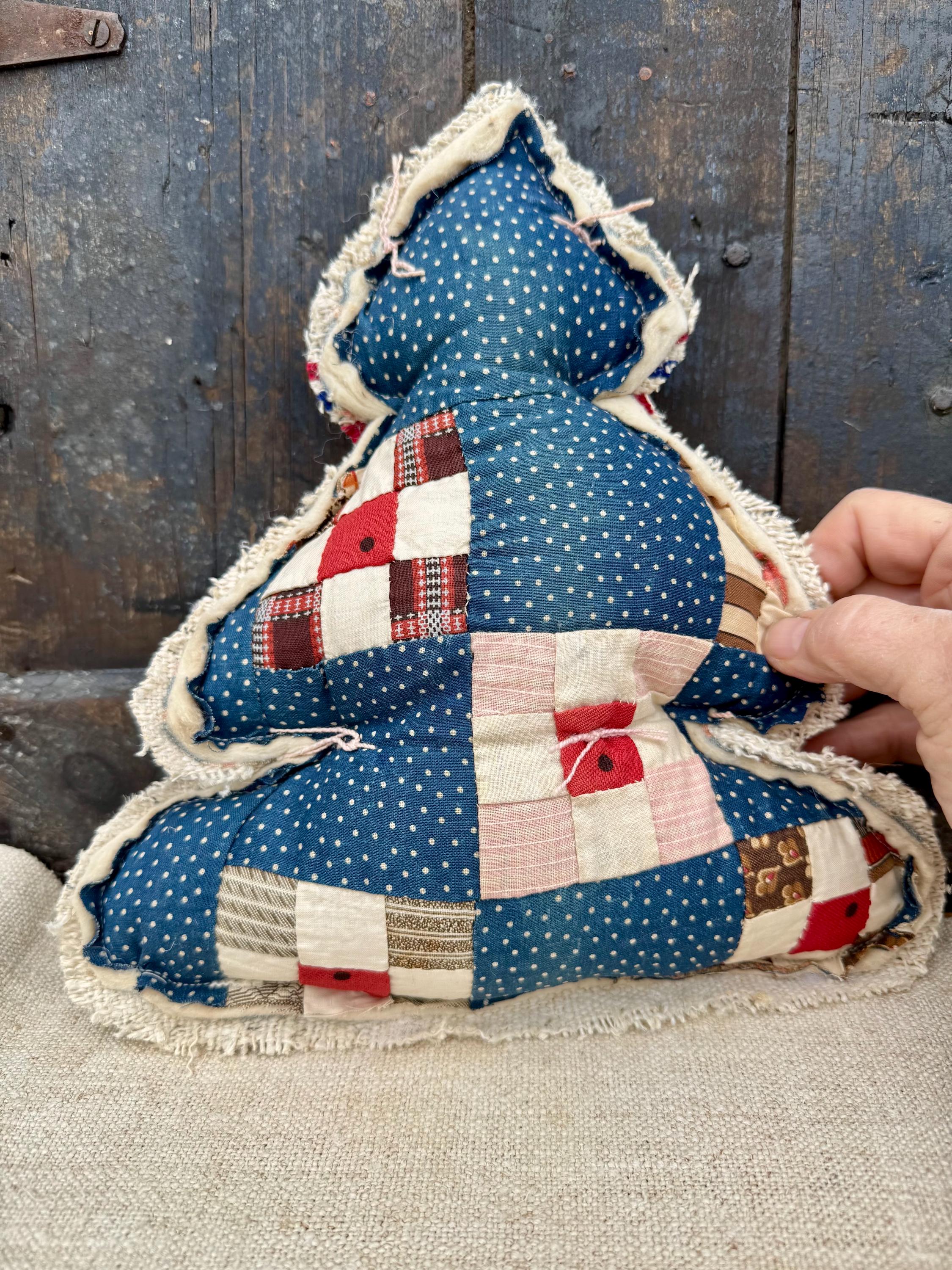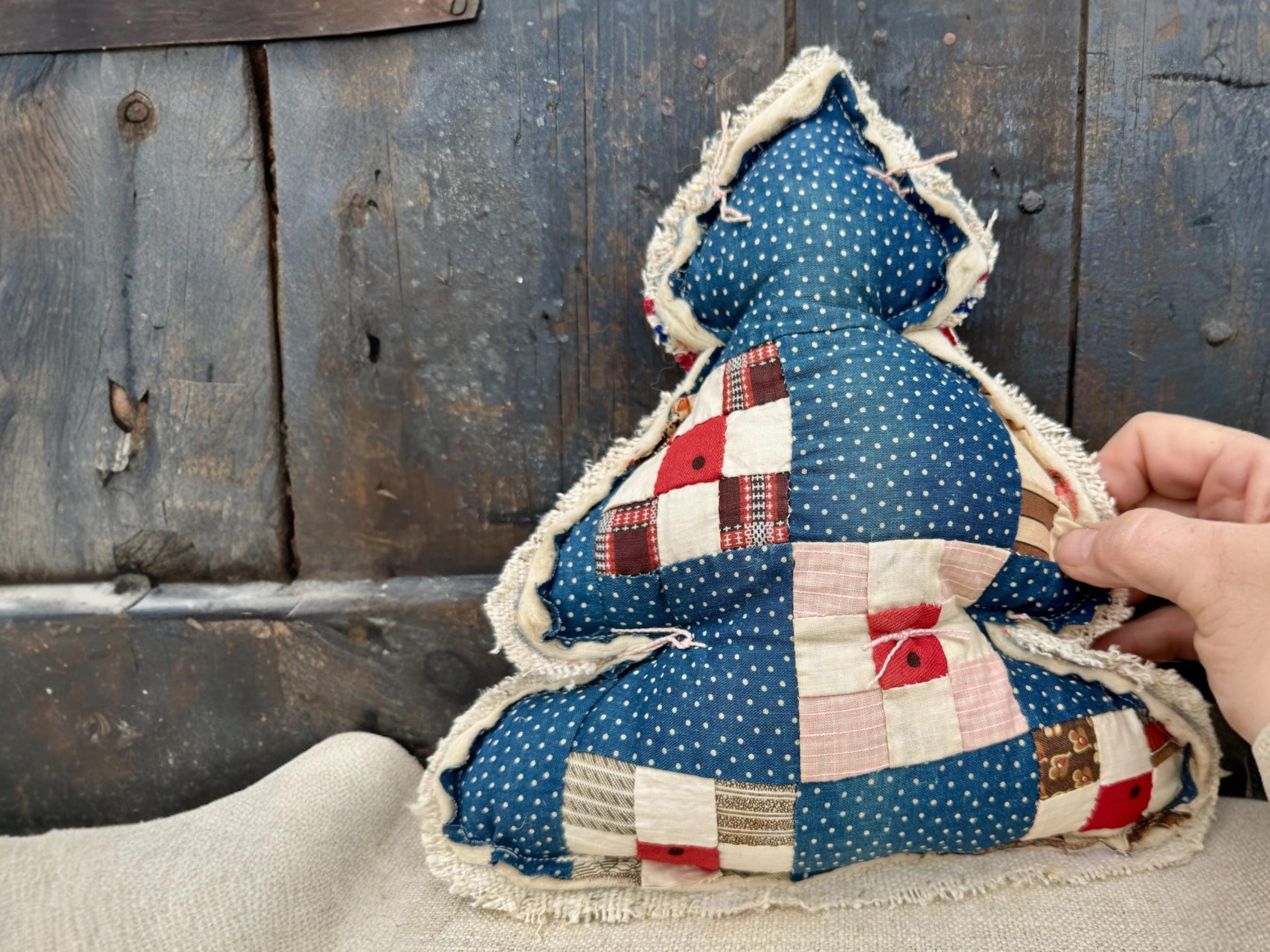 Tree - Antique Quilt Christmas Tree Pillow, Farmhouse cottage RARE 19th Century Quilt with Grain sack back, Handmade Holiday Decor, 12”