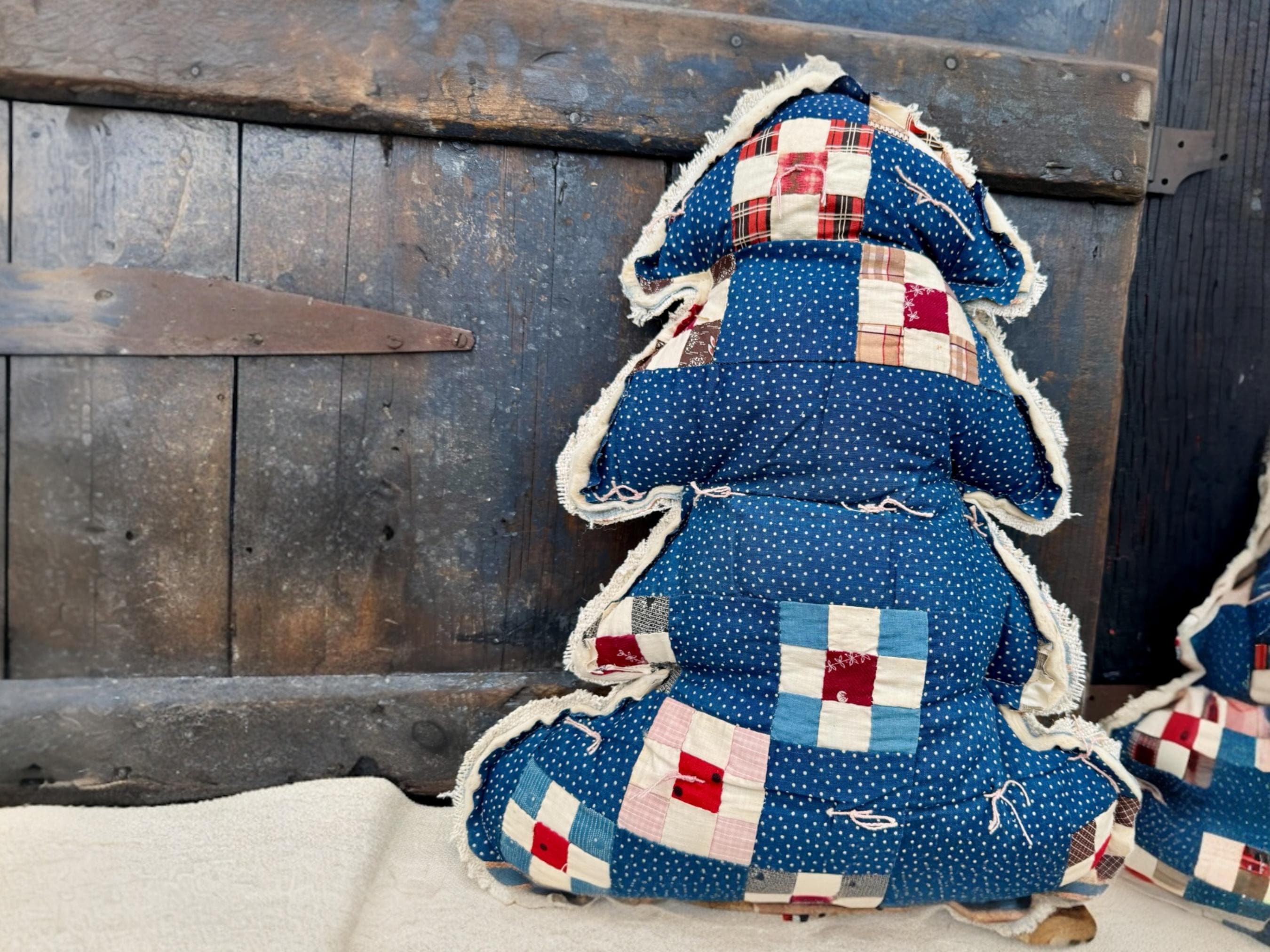 LARGE Tree - Antique Quilt Christmas Tree Pillow, Farmhouse cottage RARE 19th Century Quilt, Grain sack back, Handmade Holiday Decor, 19”