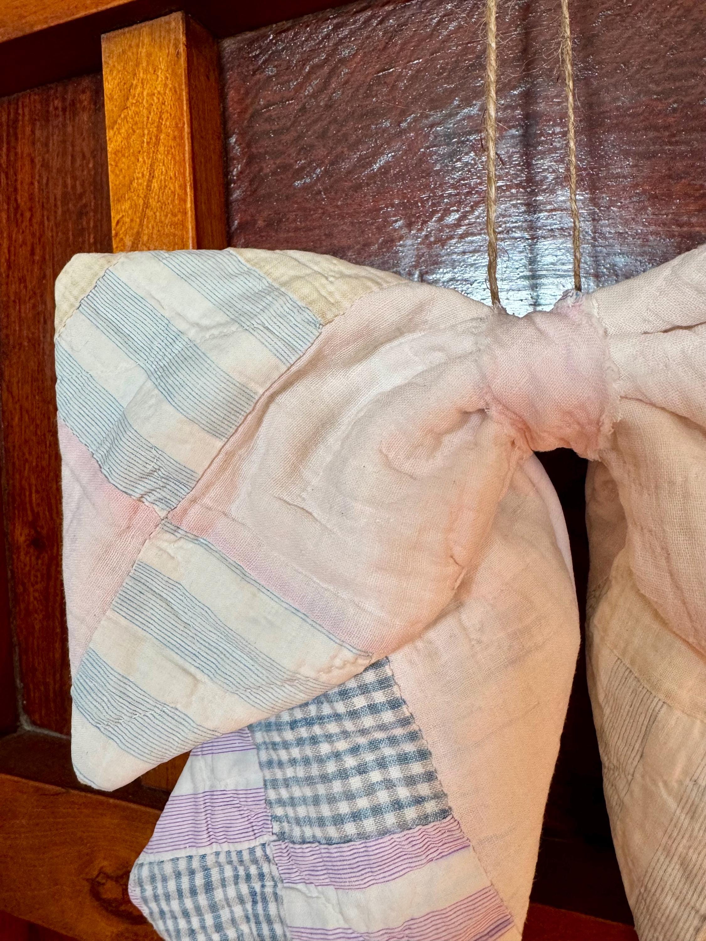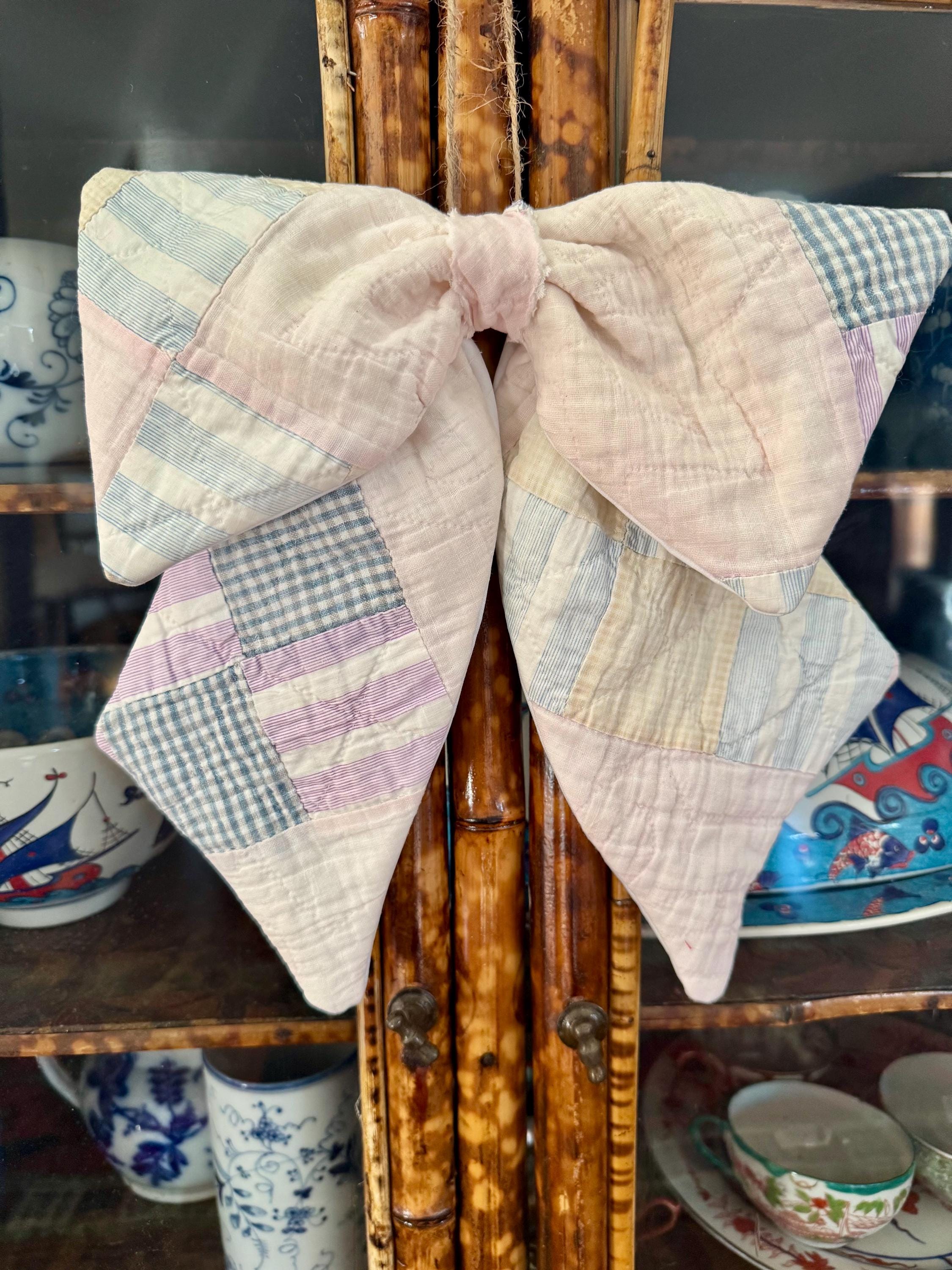 Christmas Bow - Vintage Quilt Tree Topper, Farmhouse Cottage Style Door Wreath Decor, Charming Pastel Colors! Handmade fabric quilted bow