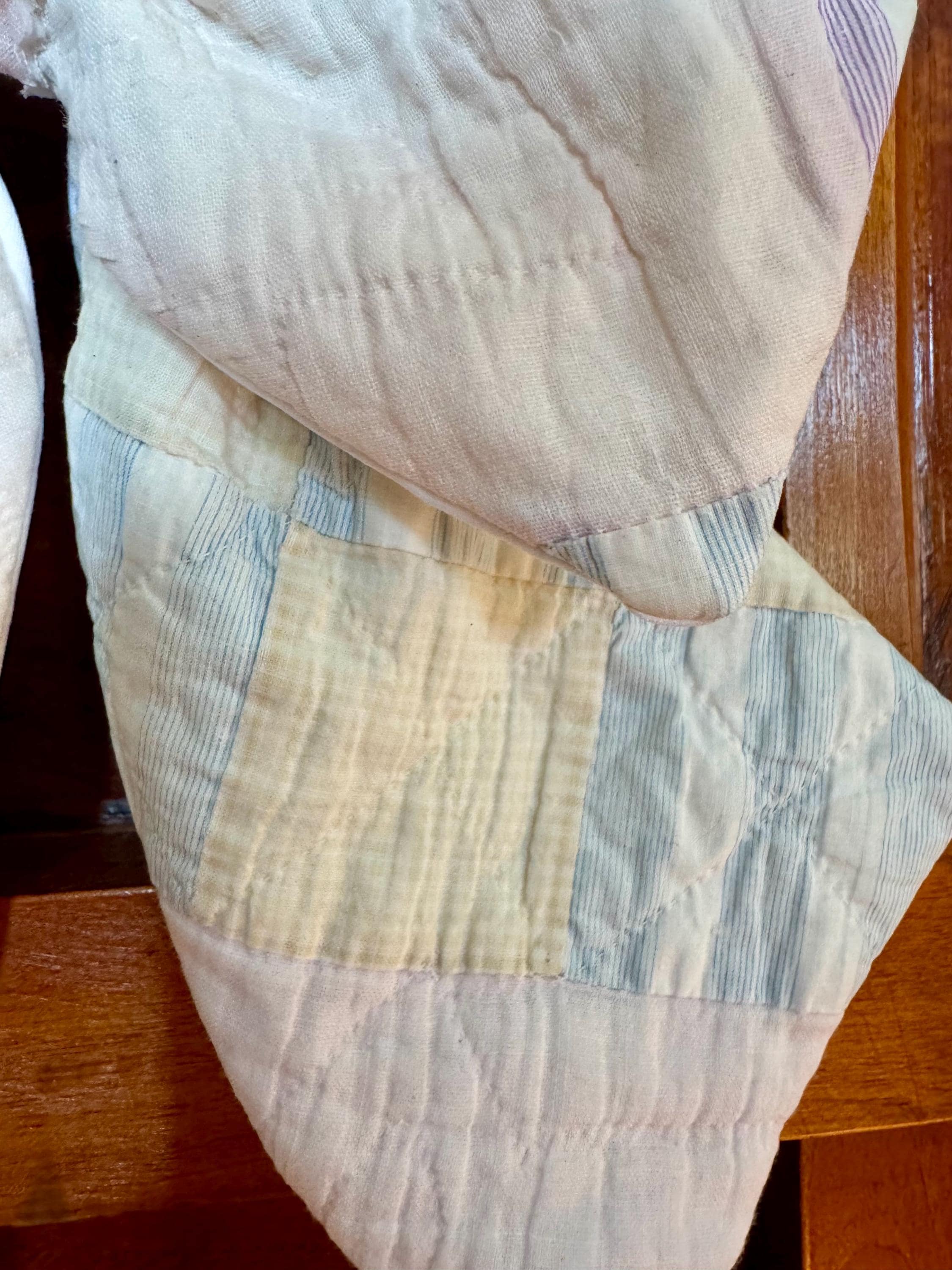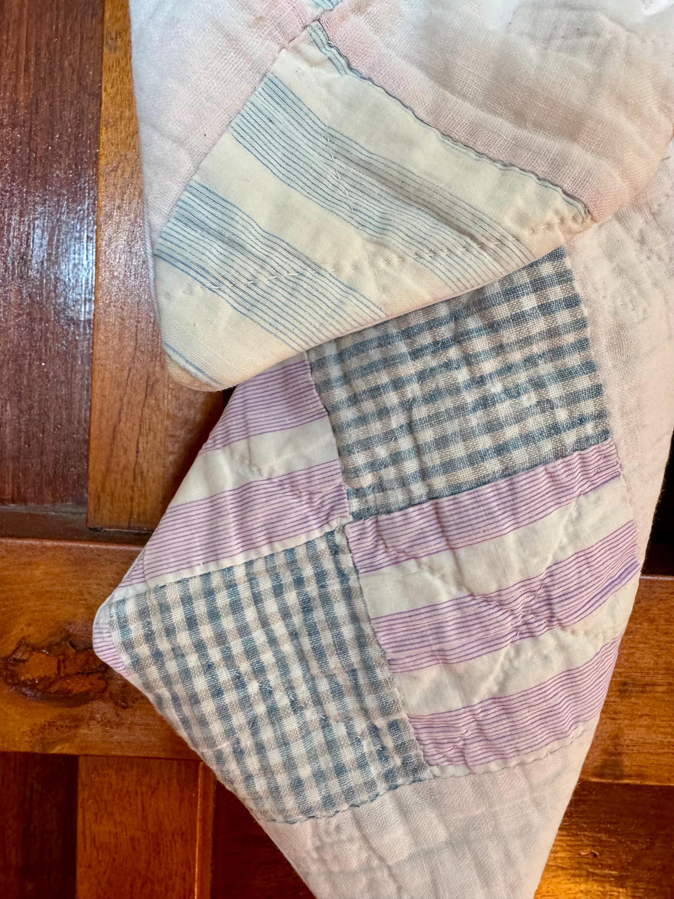 PLEASE NOTE: as with any antique and vintage textile, there may be distressed areas, wear and gentle tea staining which adds to its charm. ALSO PLEASE NOTE: These few are cut from a vintage quilt and each pattern is unique/may vary for each such scarf. Spot clean and hang to dry- not a toy. Wreaths are not included.