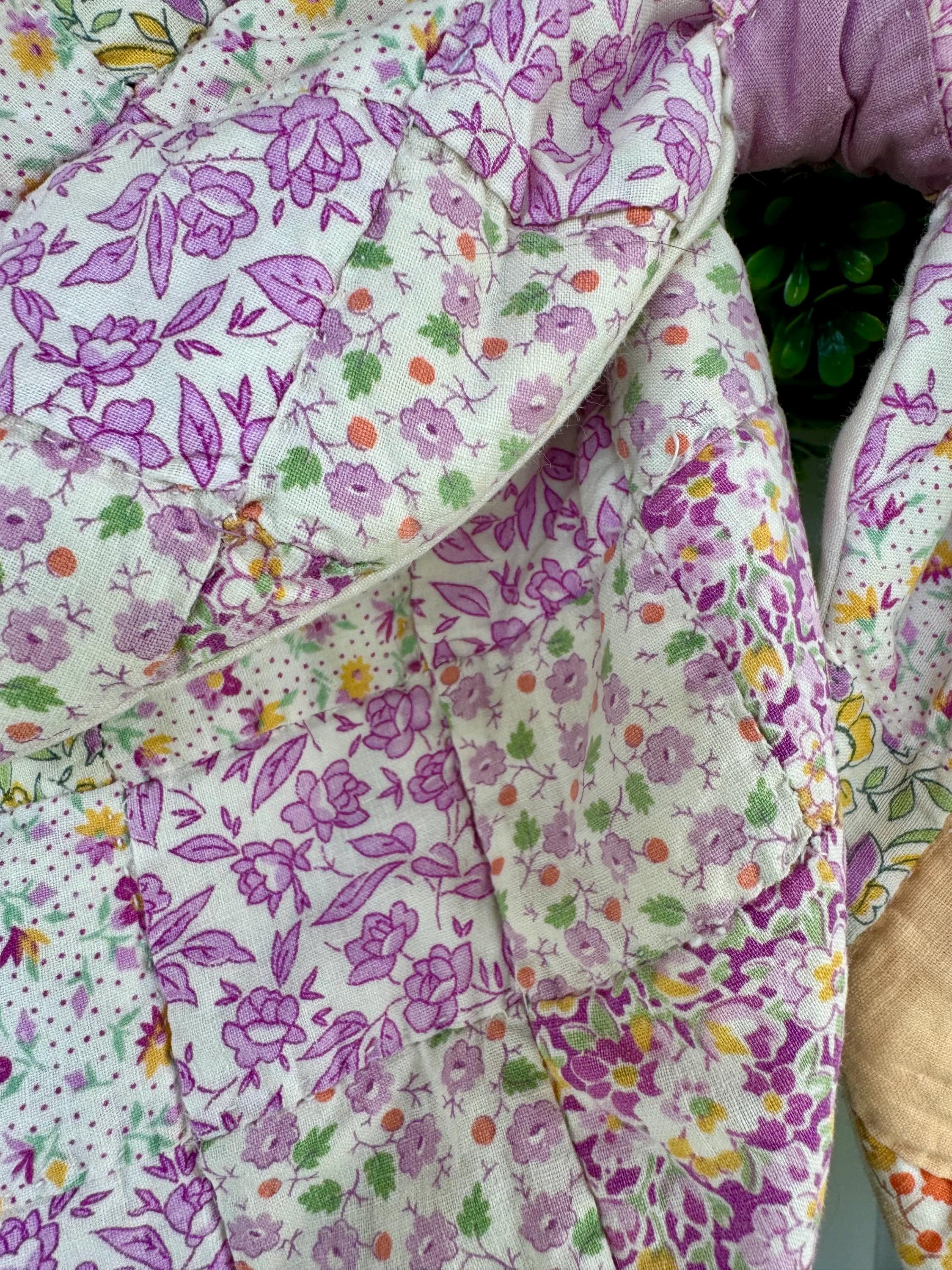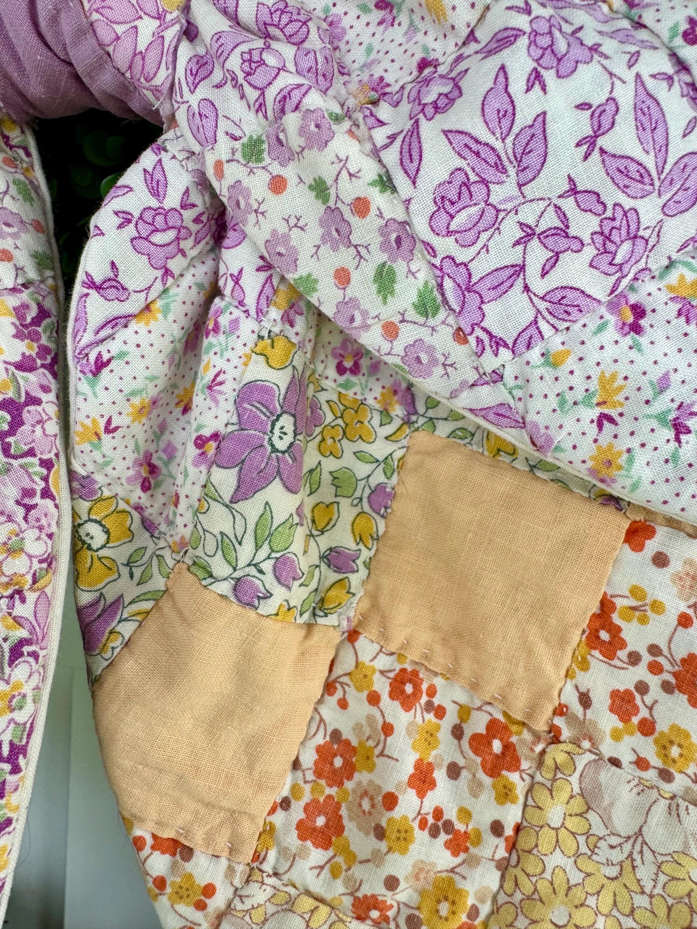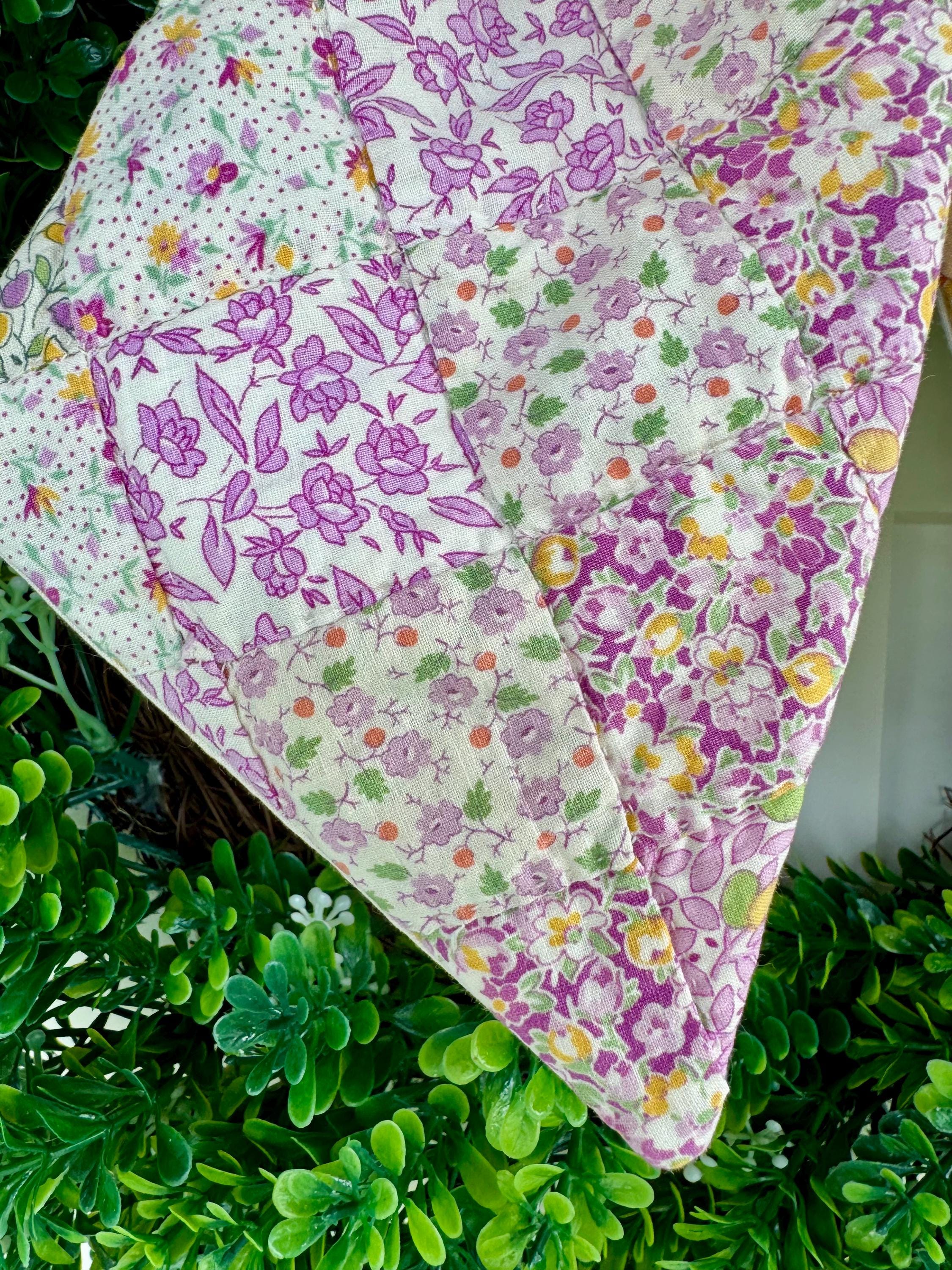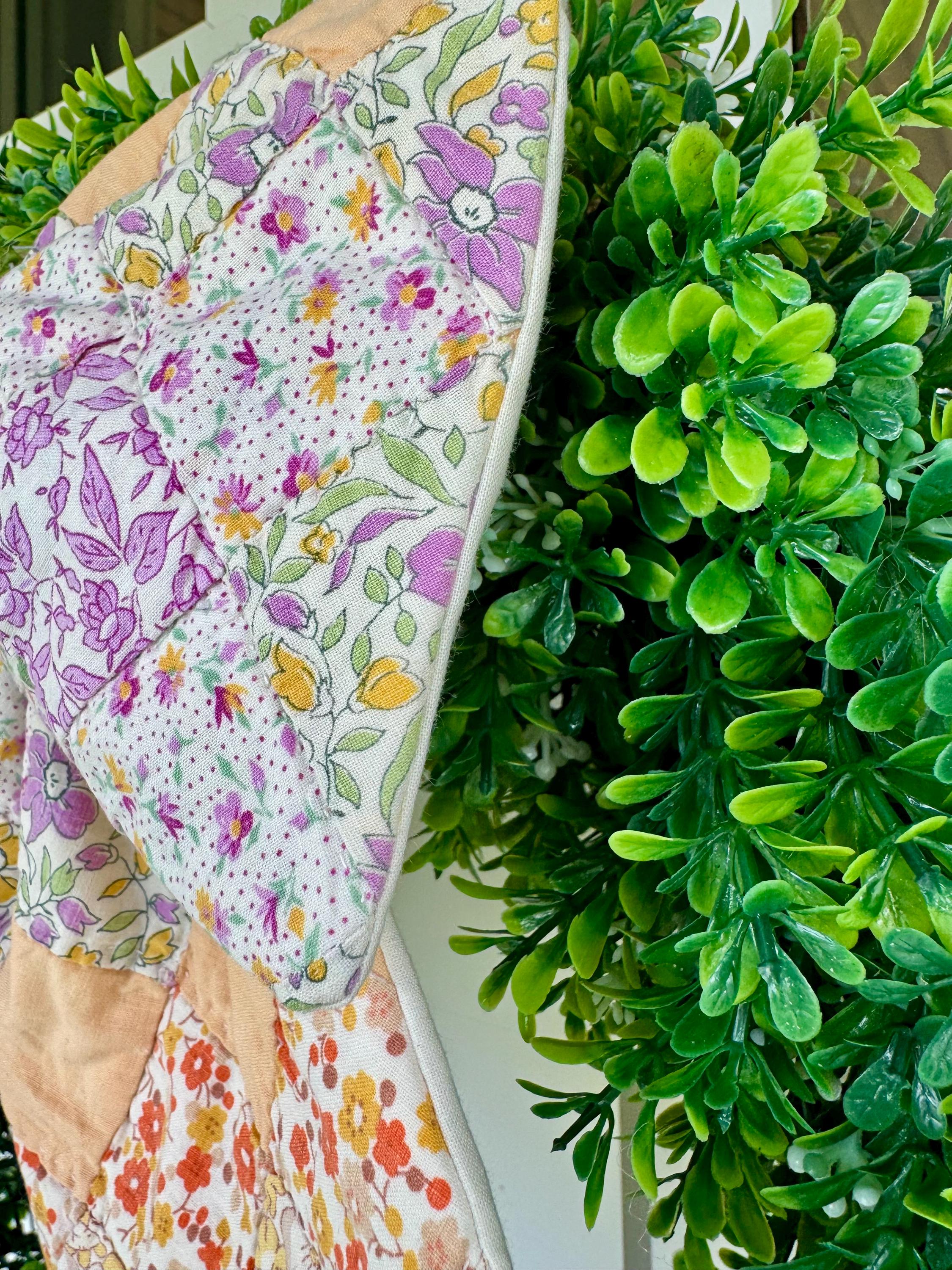 PLEASE NOTE: as with any antique and vintage textile, there may be distressed areas, wear and gentle tea staining which adds to its charm. ALSO PLEASE NOTE: These few are cut from a vintage quilt and each pattern is unique/may vary for each such scarf. Spot clean and hang to dry- not a toy. Wreaths are not included.