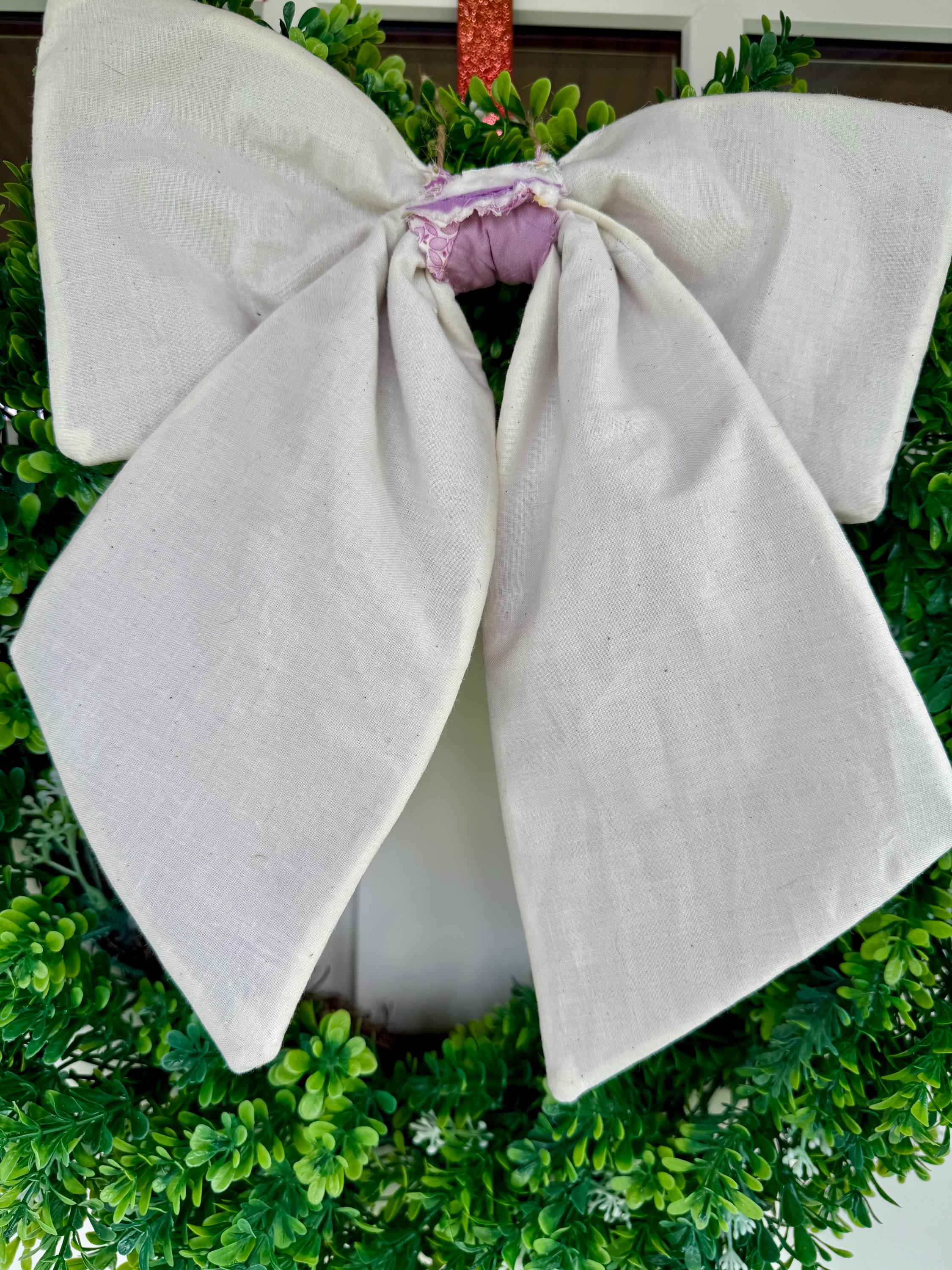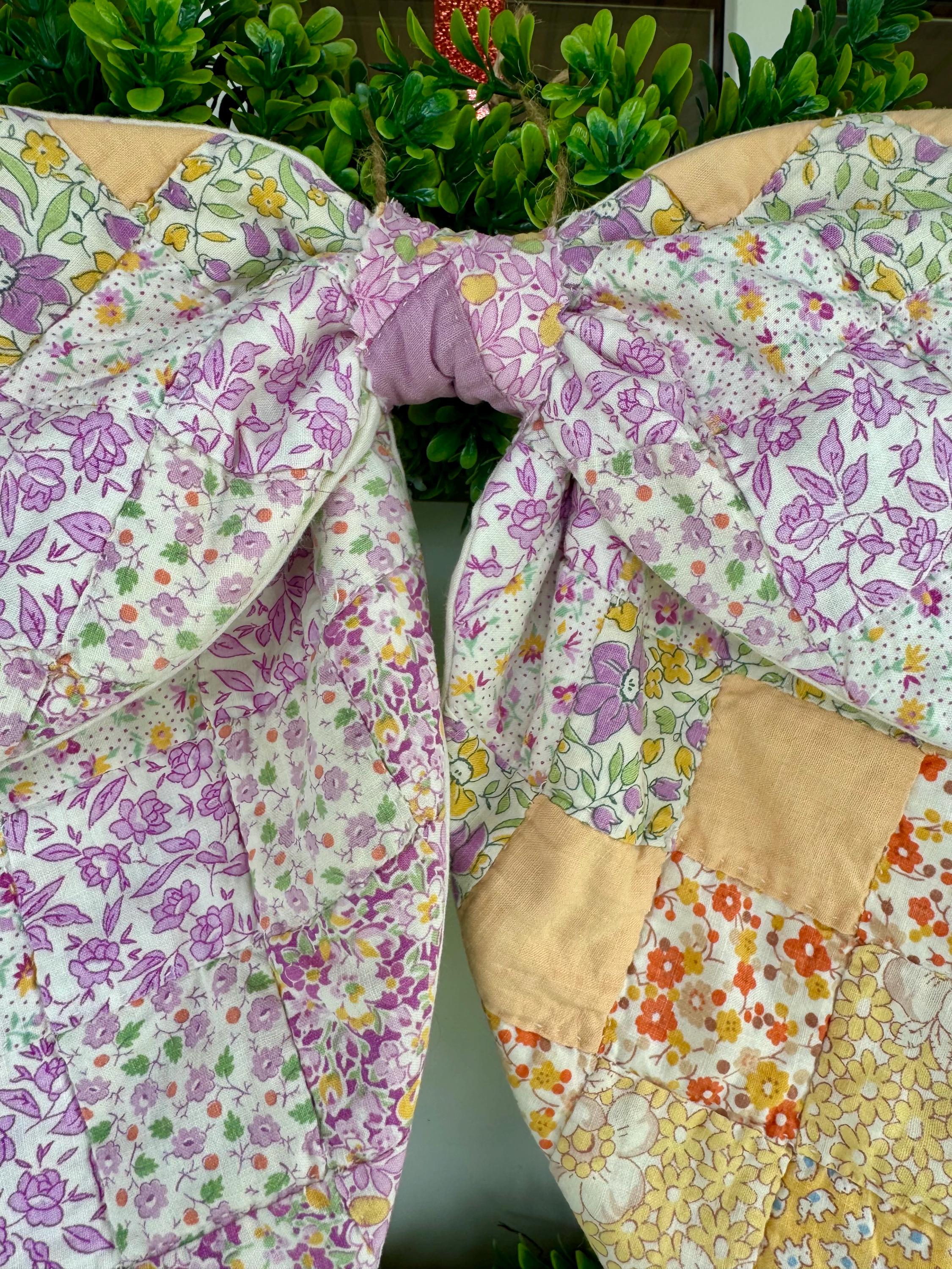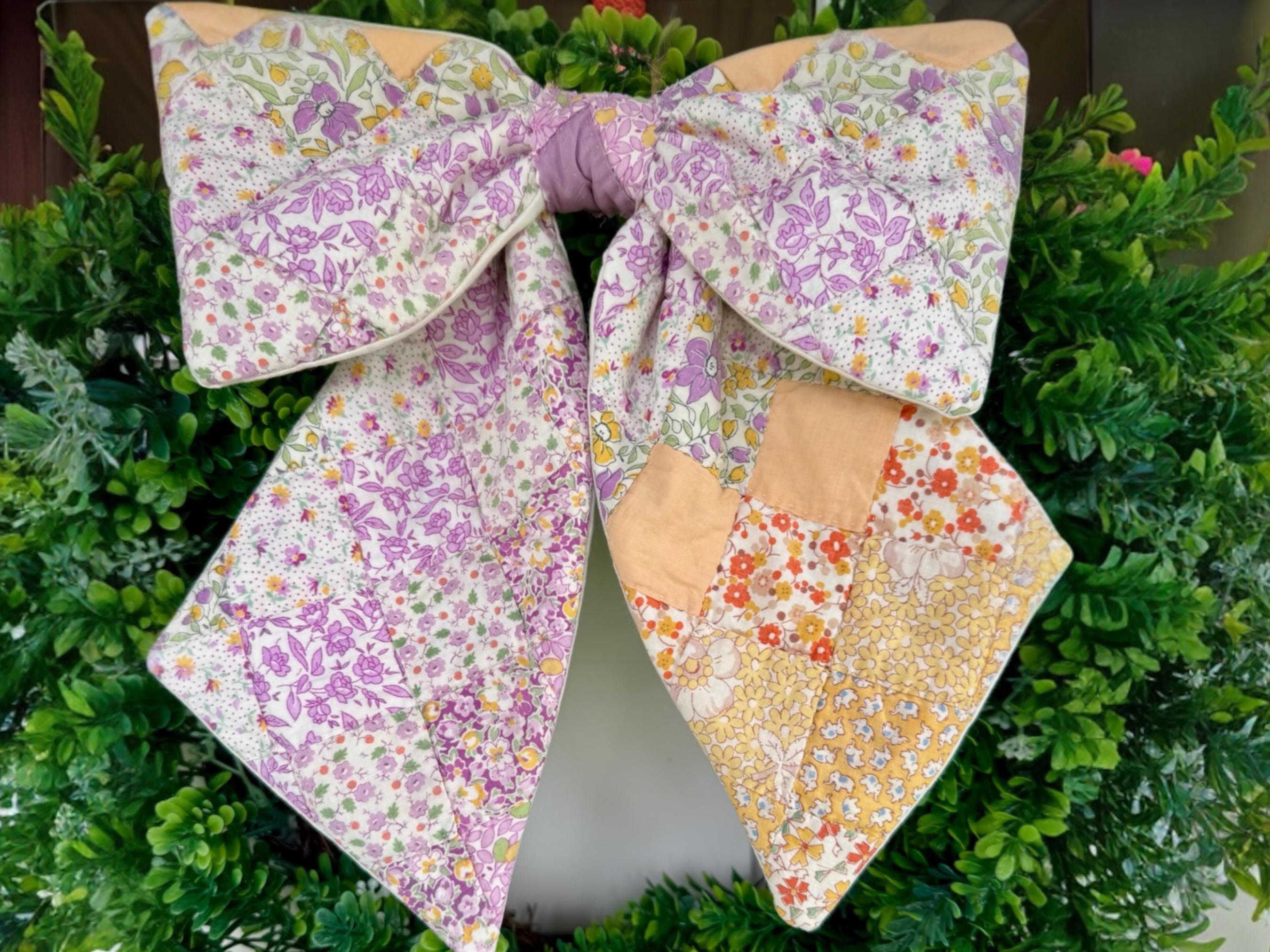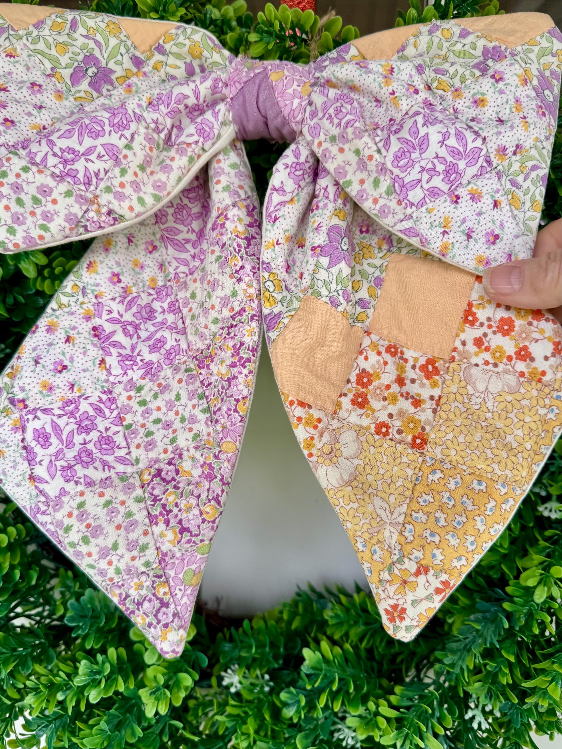 Vintage Quilt Bow - Farmhouse Cottage Style Door Wreath Decor, Summer Pastel Purple and Yellow Patchwork Colors! Handmade quilted bow